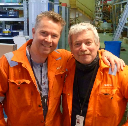 _140624 Arvid og ØyvindDenne dagen forstod jeg at Arvid er en del av svaret. En av heltene på gulvet. Det viktige limet som får team til å trekke sammen. Han gjør langt mer enn «bare» å ha kontroll på alt verktøy og utstyr for et helt skipsverft.